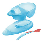 • Bowl, feeding spoon, and lid can be locked to one for travel and easy storage