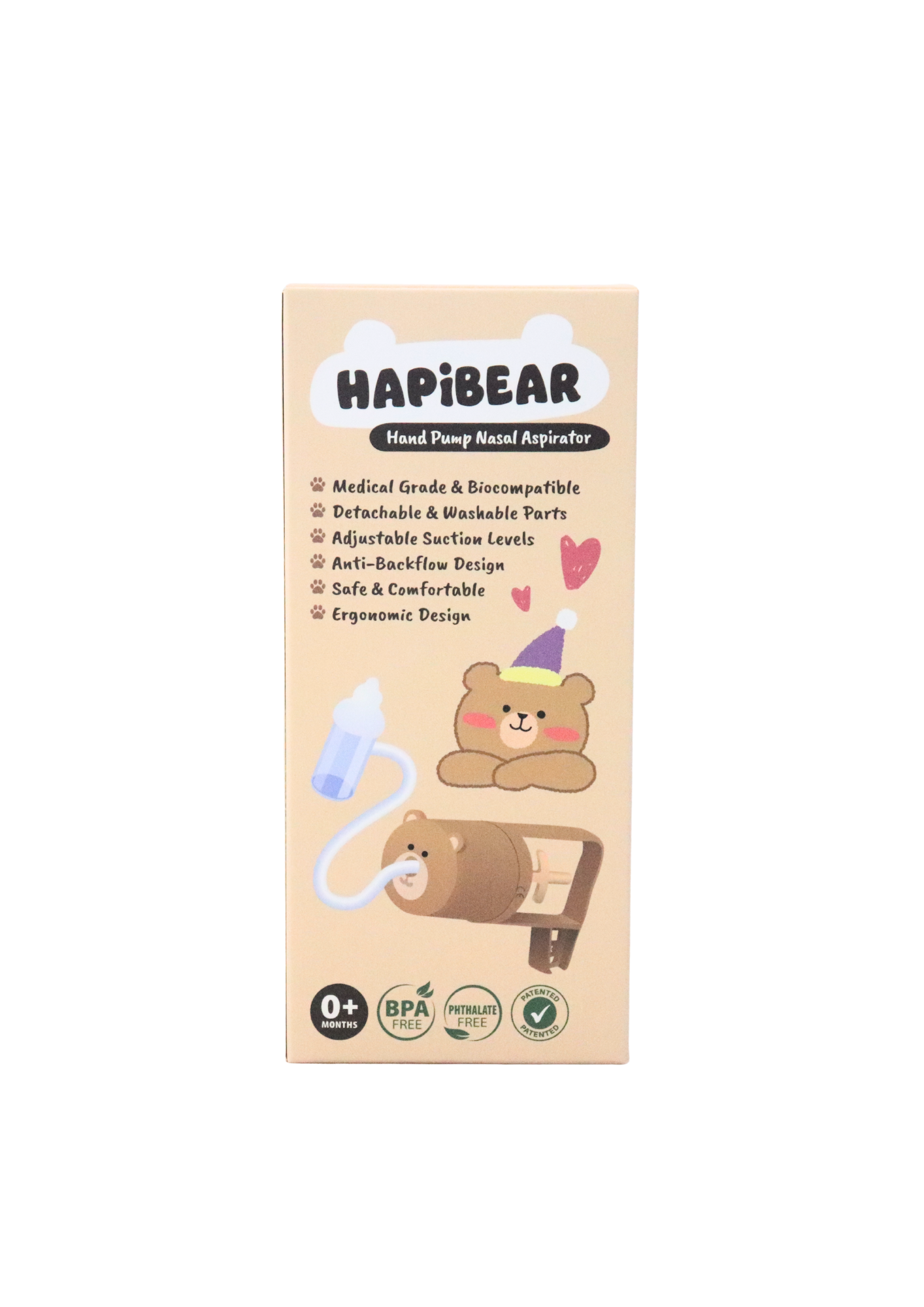 The HAPiBear Hand Pump Nasal Aspirator is ISO 13485 compliant, CE-certified, and FDA-listed. The HAPiBear Hand Pump Nasal Aspirator combines functionality with a playful bear design, making nasal care less intimidating for babies. It uses medical-grade, biocompatible materials and features adjustable suction levels, an anti-backflow mechanism, and ergonomic handling. The aspirator’s parts are easily detachable and washable, ensuring it stays clean and safe for repeated use.
