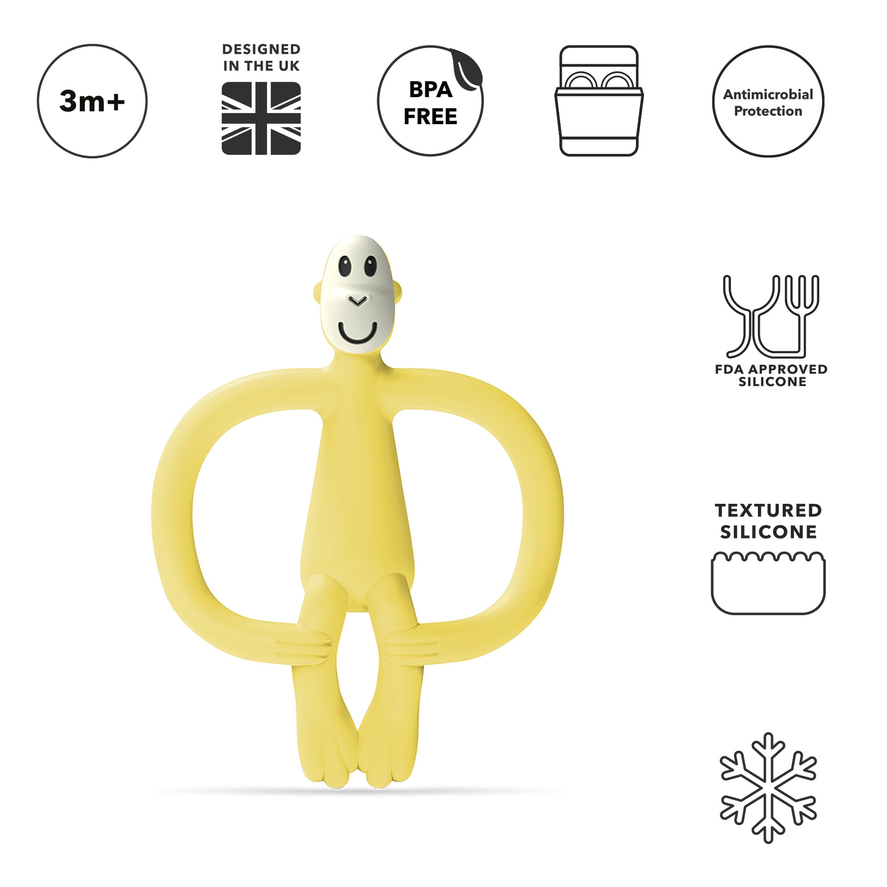 Our Monkey Teether helps make teething simple for you and your baby. Textured bumps help reach back molars and soothe pain directly and easily. Ergonomically designed to help develop motor skills, your little one will love chewing on this playful Monkey night and day. They're a friend your little one can keep at home, or take with them wherever they go!