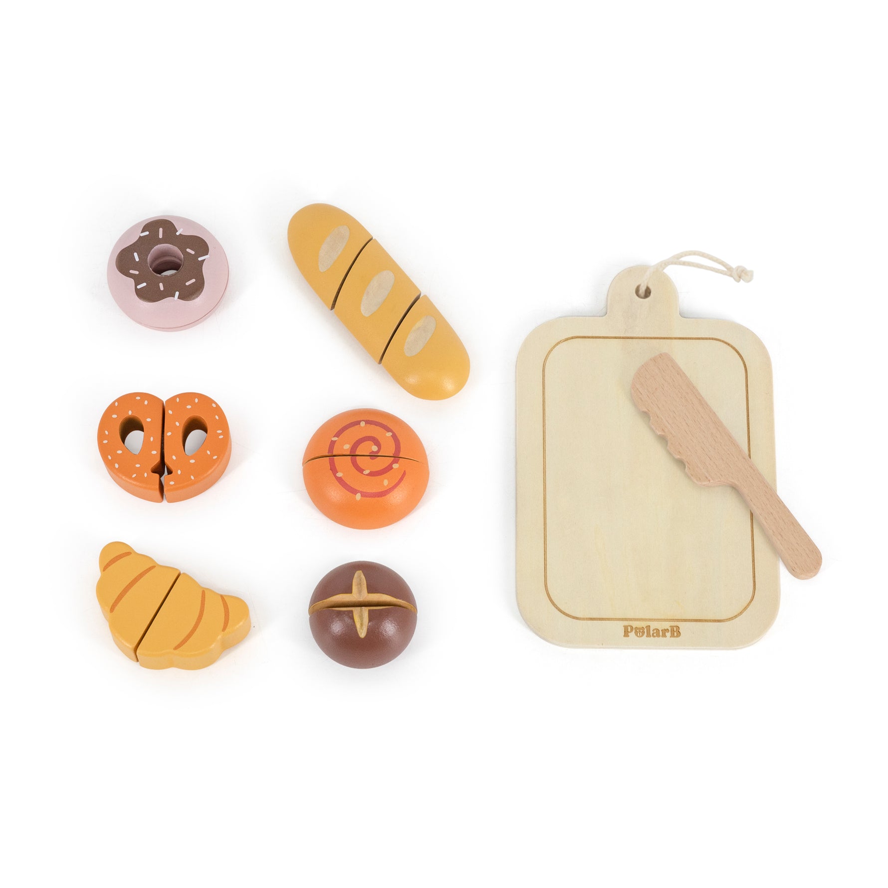 Pick your favorite bread: pretzel, croissant, lye roll, cinnamon roll, donut or baguette? Cut the breads in half and fit them back together again with velcro. Complete with a cutting board and a knife, this cutting fruits set will bring timeless fun for your child.