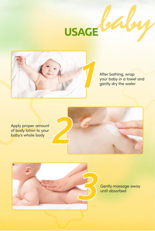 After bathing your baby or when their skin feels dry, take a small amount in your hands and gently apply it to your baby's face and body. Massage lightly for better absorption.