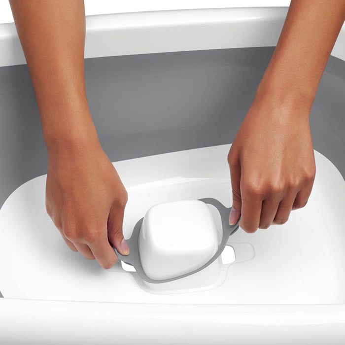 For parents on the market for a space-saving baby bathtub, Oxo Tot’s Splash & Store is safe, versatile, easy to store, and designed to grow with little ones from 0 - 18 months. The carefully engineered design has a narrow end for cradling newborns and smaller infants – eliminating the need for a separate infant insert. The wider end is perfect for babies who can sit up on their own, providing them plenty of space to splash; but has high walls to keep water contained. The built-in support post keeps babies safely in place, no matter their age or stage. The quick-release and dual-sided drain is easy for grown-ups to access, even with a baby in the Tub. And the Tub’s smooth construction makes it a cinch to clean. When bath time’s done, the Tub collapses flat for compact storage, and the swiveling hook lets you hang it on showerheads or rods for quick drying. Baby will be neat and tidy, and so will the Tub.