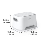 For extra peace of mind: The non-slip surface keeps feet from slipping, while the non-slip base holds the Stool firmly in place (even when your little one’s jumping and dancing around). Plus, the easy-to-grip handles make it simple for anyone in the family to carry from room to room. The stool comes in three different colors and holds up to 200 pounds.