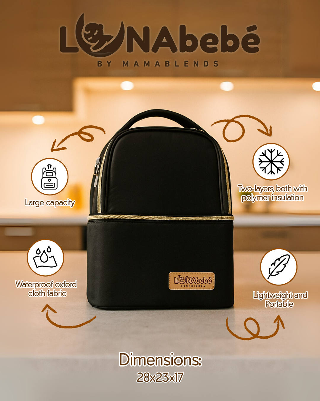 Lunabebe Two-Layer Breastpump Thermal Cooler Black Bag