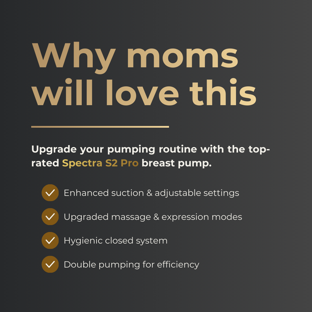 The Spectra S2 Pro is a hospital-grade, double electric breast pump built for comfortable and effective milk expression. Designed with a closed system to ensure hygiene, it features adjustable suction settings and a massage mode that simulates natural breastfeeding. Operating quietly and equipped with a nightlight, it’s well-suited for home use. Unlike the S1 Pro, the S2 Pro requires a power outlet and does not include a rechargeable battery, making it a dependable option for stationary pumping.