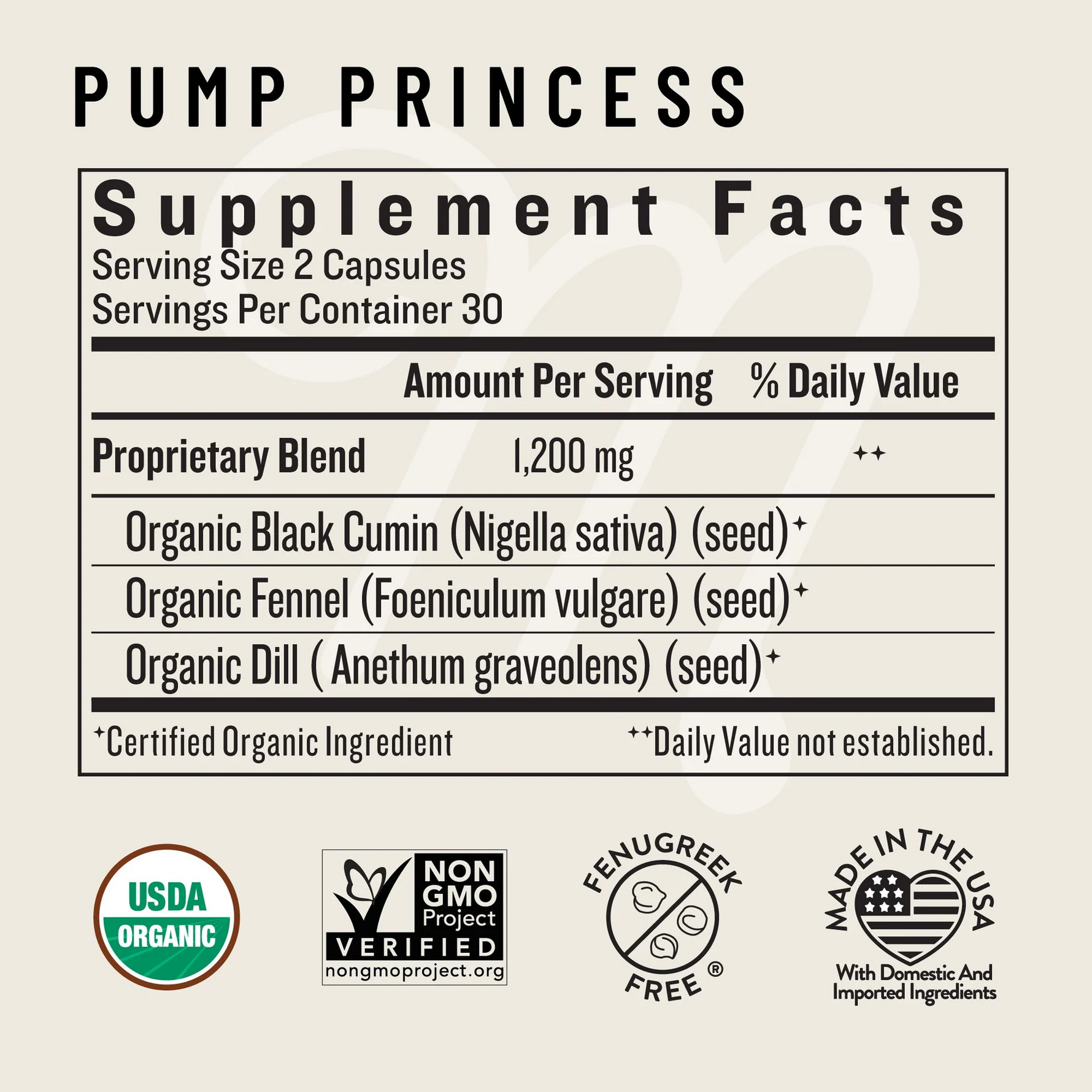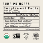 Our Pump Princess lactation supplement contains 3 powerful organic herbs to naturally improve milk flow. For centuries, black seed has been a cherished secret in India and the Middle East for promoting healthy lactation. Additionally, fennel and dill have been trusted traditions, offering digestive support for both mothers and their little ones.