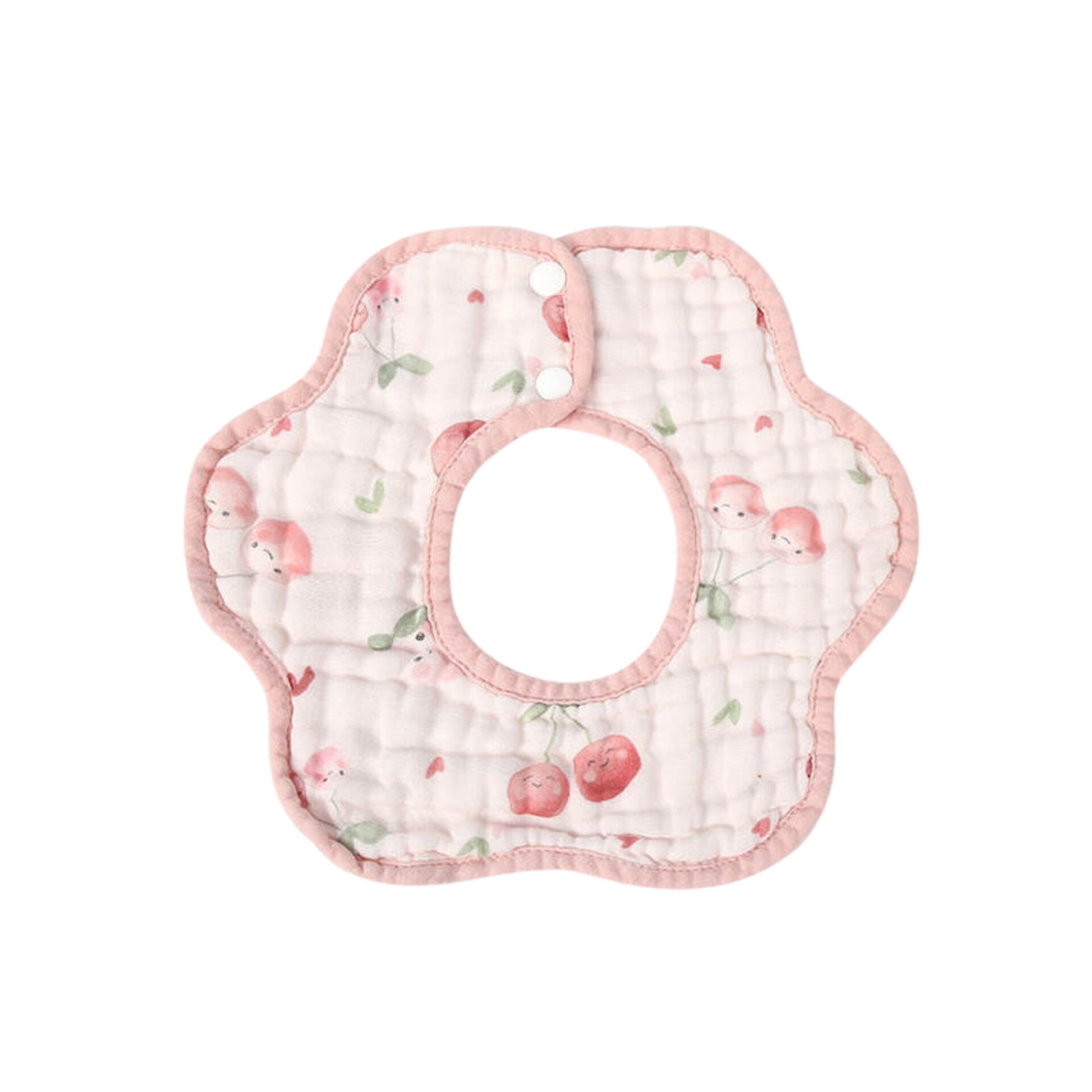 The Gabriel Bib is made of 8 layers of soft cotton gauze material. It is absorbent, lightweight and breathable. It has double snap fasteners for a snug fit. It can be used from 0 to 24 months.