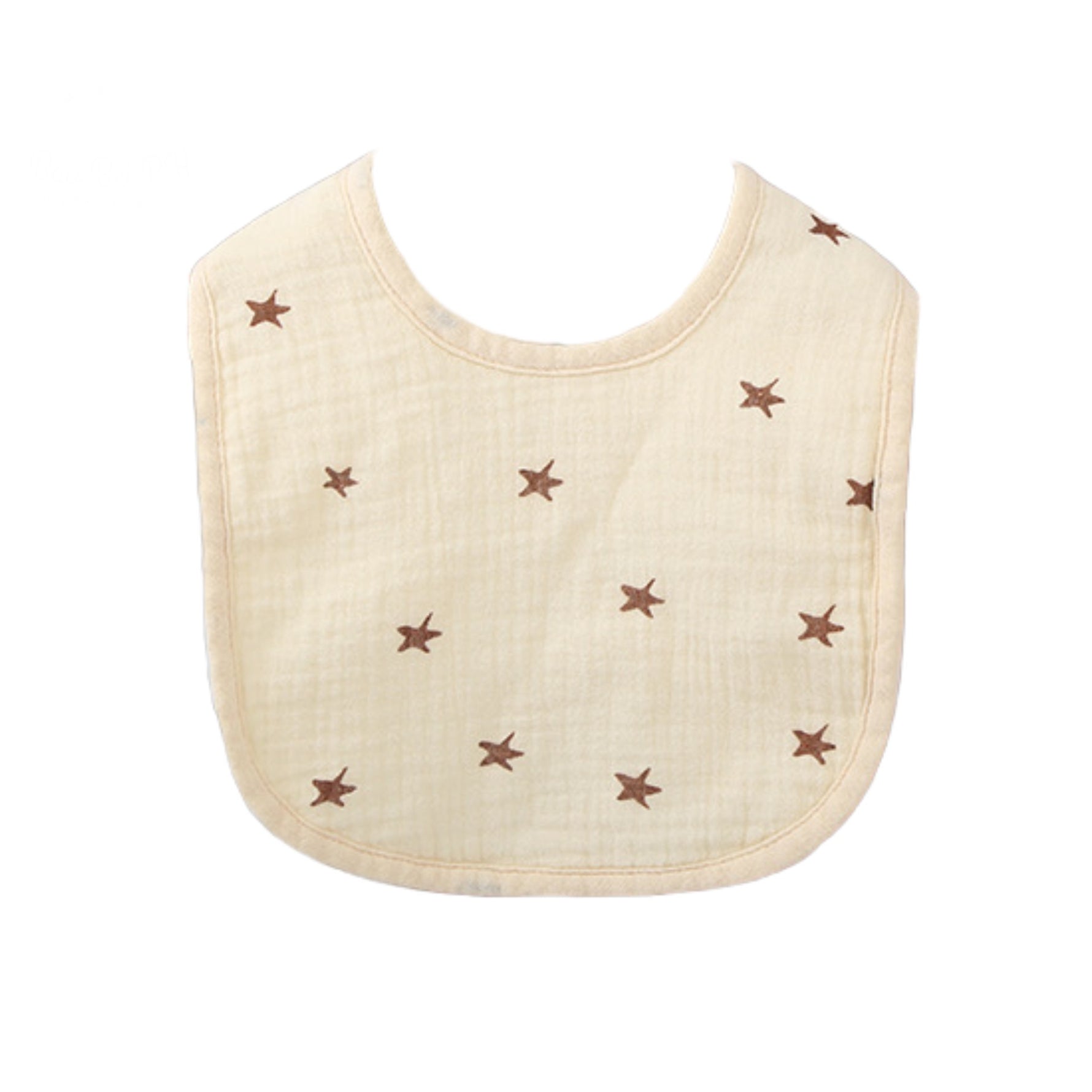 This bib has a U-shaped design. It has a secured snap to ensure it won’t come off easily.The front part is made of soft cotton gauze. The back part is made of minky fabric that has a super soft and plush texture. Both helps in easy absorption of liquids from drool and milk spit out.