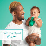 Meet the Infantino My 1st Tumbler, the perfect sidekick to keep your little one hydrated! This adorable 9oz tumbler is designed for babies who are just starting to sip on their own. Crafted from lightweight, 100% premium silicone, it's perfectly sized for tiny hands. The two-piece, leak-resistant straw includes a smart valve that ensures smooth liquid flow and prevents spills, even if the tumbler is turned upside down. The no-pull-out straw features a soft silicone tip, making it ideal for those initial precious sips. It also has a handle for easy carrying and fits most cup holders, so it’s always within reach. Cleaning is simple—disassemble and place it on the top rack of your dishwasher or handwash with warm, soapy water.