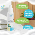 Mosquito and insect spray contains ingredients from natural extracts.
