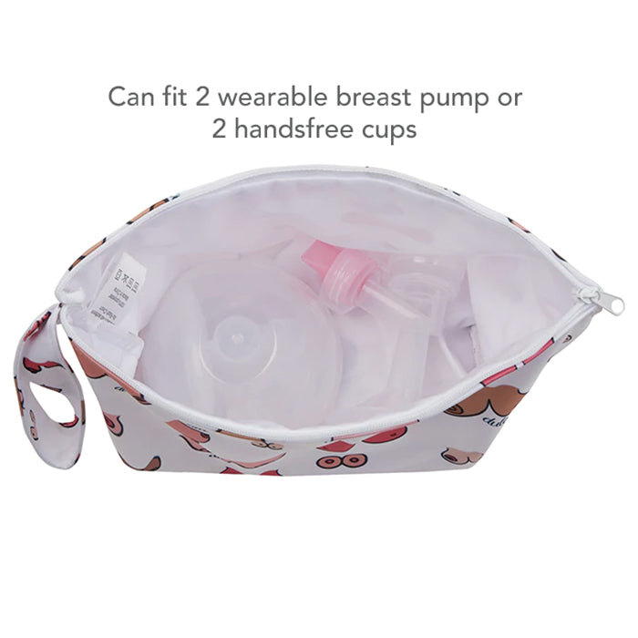 A reusable bag for breast pump parts for moms on the go. Keeps your breast pump parts safe from dust and contamination.