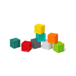Stack, squeeze or teethe on eight colorful, textured blocks. These soft, squishy blocks are perfect for little hands. Each side features a different, engaging scene including animal pals and numbers 1 through 8. Includes a reusable grab-and-go tote bag, perfect for travel or clean up time!