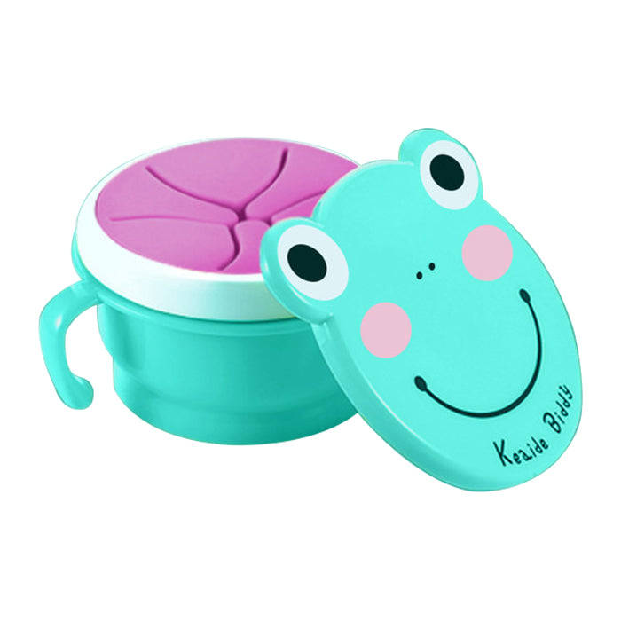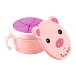 Fun container for snacks at home or on the go. The soft silicone top has flaps for small fingers to reach snacks without worrying about spills.