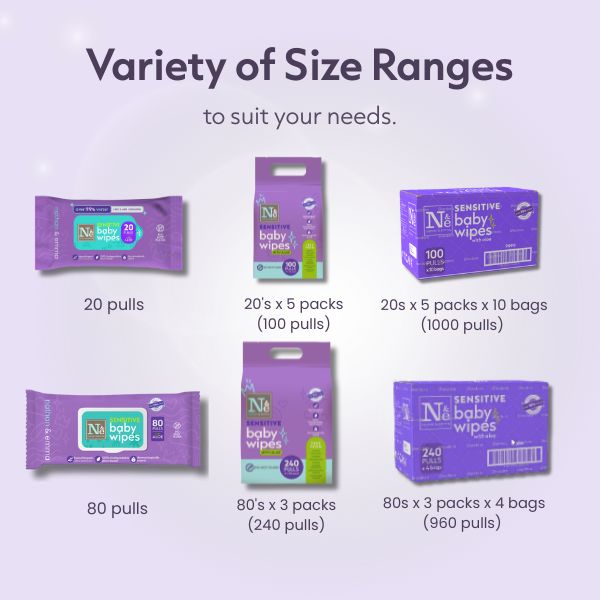 Nathan & Emma Sensitive Baby Wipes are made with over 99% water and aloe—gentle, safe, and soothing for your little one’s delicate skin. Hypoallergenic, plant-based, and biodegradable, they’re created with love for moms who do it all. Use the 20s pack for on-the-go messes, the 80s pack for everyday use at home, or grab our bundle packs to make sure you're always stocked. Whether it’s a quick cleanup or a messy moment, we’re here for you—because we see you, we understand you, and we’re with you in every beginning.