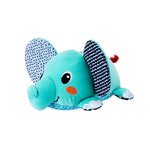 This fun musical pal jitters and shakes. Press the button on his head to watch this colorful musical lion scoot along and sing a song. Fun to chase for little crawlers. The elephant's ears are crinkly to the touch.