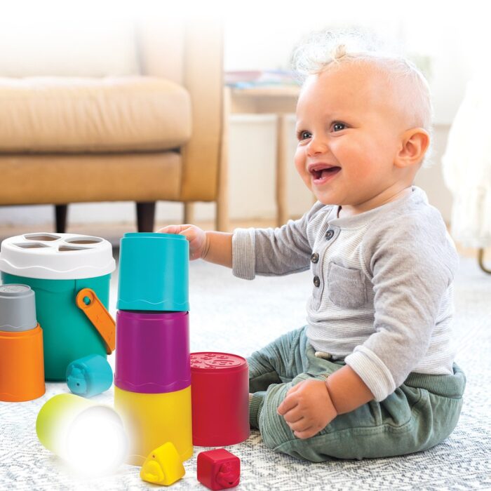 Endless fun is in store with shape sorting stack 'n' nest buckets. complete with 10 stacking cups in a rainbow of colours plus 4 shape sorter pieces to match and push, this toy provides toddlers age 6 months and up an abundance of fun choices. young ones can play virtually anywhere parents and care-givers choose from the kitchen to the bath, indoors and outdoors. the convenient shape sorting stack 'n' nest buckets allows for easy traveling. durable, bright, cheerful and thought-provoking, watch your baby's curiosity grow as tall as the tower stacks or as deep as the buckets' contents. infantino make playtime fun and easy for parents and kids - providing modern, safe, innovative products that combine learning with joy. we put great passion into our products. each toy is designed for a child and parent to experience and create lifelong memories. we care about the happiness and well-being of little persons; therefore, safety and trustworthiness are of utmost importance to us. we ensure that all our products comply with the highest quality and international safety standards.