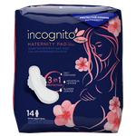 For immediate use during postpartum recovery or during your heaviest menstruation, Incognito's Maternity pads were designed to help protect new moms after childbirth. The superabsorbent core locks in more wetness than a standard feminine hygiene pad while neutralizing odors. With Odor Guard® and 100% breathability, you can feel fresh and confident throughout the day.