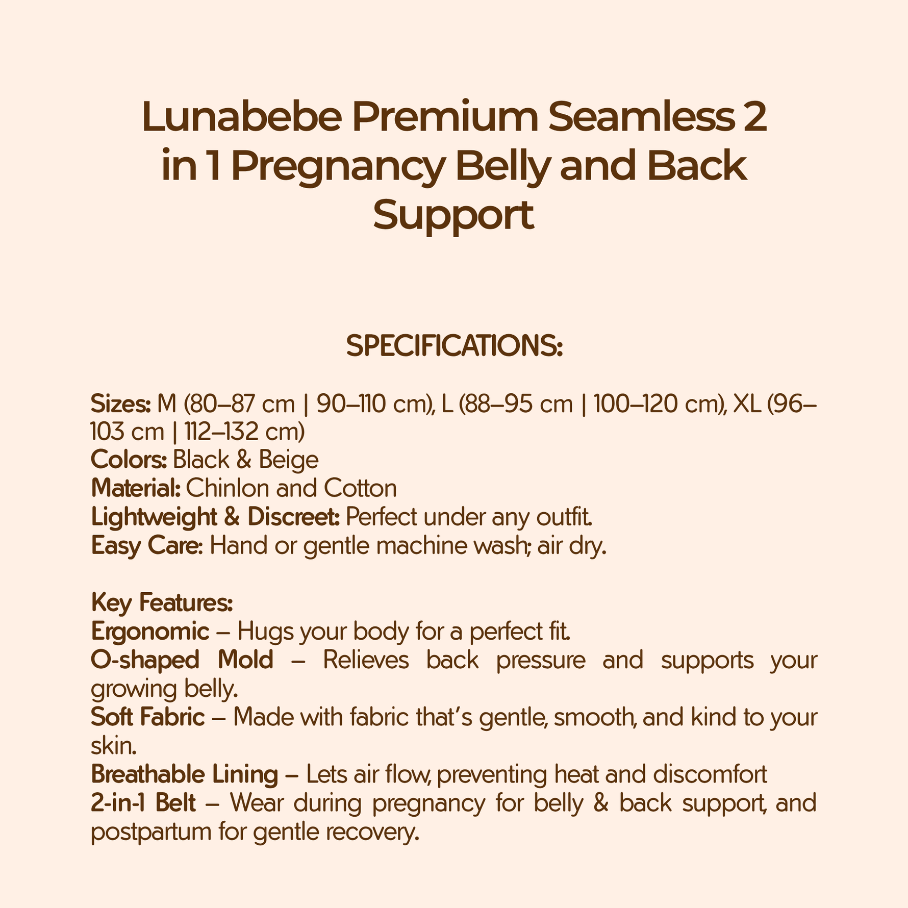 Lunabebe Premium Seamless 2 in 1 Pregnancy Belly and Back Support