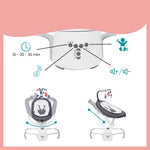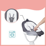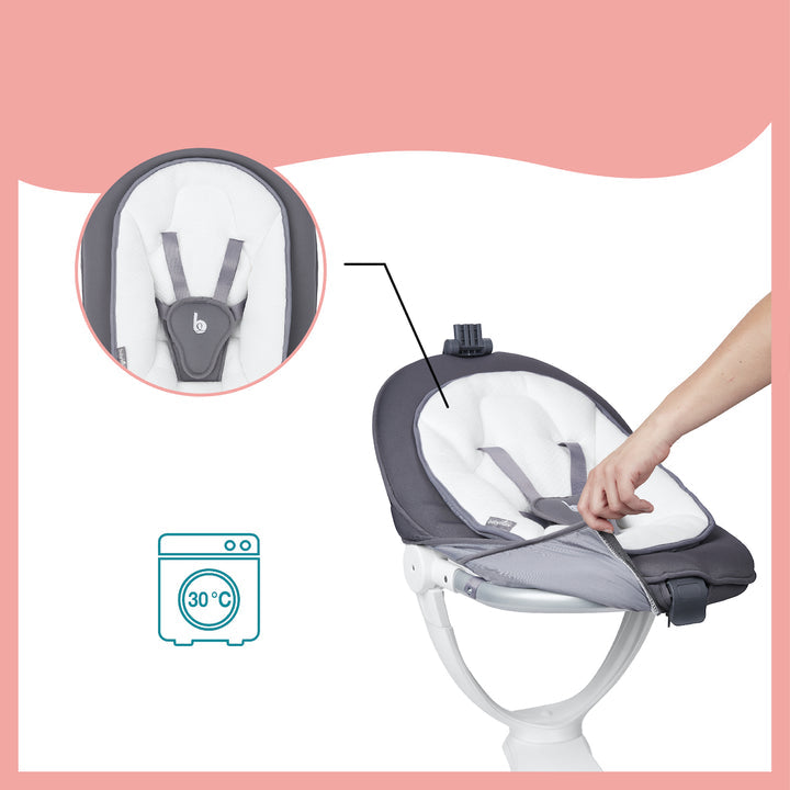 With its 360°, your baby can explore their surroundings, join in with family life and stay permanently by your side. With 2 rocking modes (side to side or back and forth) and 5 speeds, the swing gently rocks your baby as if they were in your arms. The soft materials and newborn insert make the Swoon Motion like a cozy little cocoon that's really comfortable for your child. Baby is always perfectly positioned to suit their needs with the 5-position adjustable seat (3 for the backrest and 2 for the feet).
