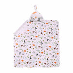 The Tyler Baby Blanket + Matching Hat Set has 1 multipurpose blanket and 1 matching baby beanie. The blanket can be used as a swaddle, cover, blanket, burp cloth, playmat, etc. The beanie is important to help regulate baby’s temperature.