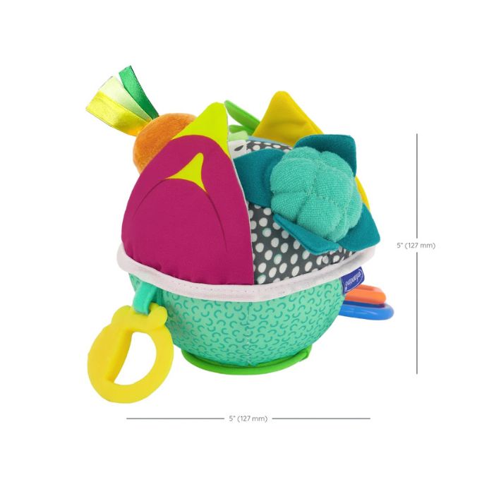 9 engaging sensory activities bring 360 degrees of fun to ball time! Little hands will love shaking, grasping and tossing this easy-to-hold ball. Skill-led activities like peeling back fruit, clacking rings, and making rattle sounds encourage fine, gross, and cognitive skills for busy little hands and curious minds.