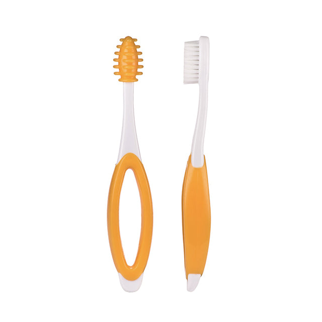 Pediatric dentists recommended cleaning your baby’s gums – even before the first tooth appears – with a soft infant toothbrush. The Kidsme Easy Hold Toothbrush Set allow gentle cleaning and massaging newborn babies' teeth and gums, and get babies to enjoy imitating toothbrushing.
