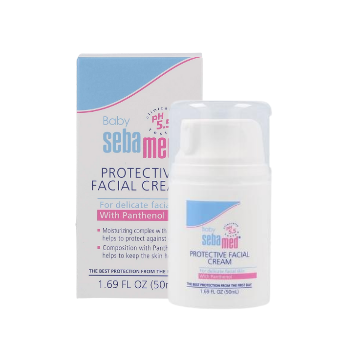 Sebamed Baby Protective Facial Cream provides baby’s skin the moisture it needs. Our pH 5.5 formulation promotes the development of baby’s skin barrier, protecting your little one against skin conditions. Relieves irritation caused by saliva. One of the best facial creams for baby skin. Dermatologically tested.