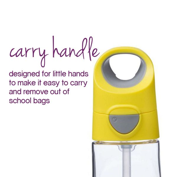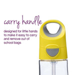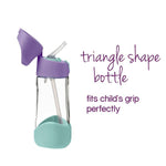 Made from Tritan™, our unique big kids’ drink bottle is ideal for kindy and school kids. Its unique triangle shape bottle is designed specifically for little hands, making it easier for kids to grip. Easy push button pops open the lid, keeping straw tops hygienic when closed and never goes astray. Spill-proof bite valve straw top prevents accidental spills. Robust carry handle makes it easy for kids to carry and remove out of school bags. Its 600ml capacity and angled silicone straw lets kids drink to the very last drop and stay hydrated throughout the day. Minimal parts and ultra easy to assemble / disassemble and clean. Dishwasher safe. Plus, customise the look with removable bumper.