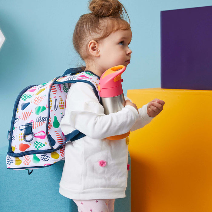 We’ve redefined cool with our new insulated drink bottle. Our newest drink bottle has insulating super powers! The double walled stainless steel keeps liquids cool for up to 8 hours and warm for up to 6, so now your little one can stay hydrated whatever the weather. Complete with carry handle and push button opening, designed specifically for little hands. Clean modern design and big kid aesthetic. Parents love no leaks in the bag (when the lid is closed).