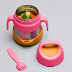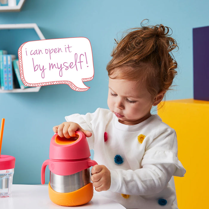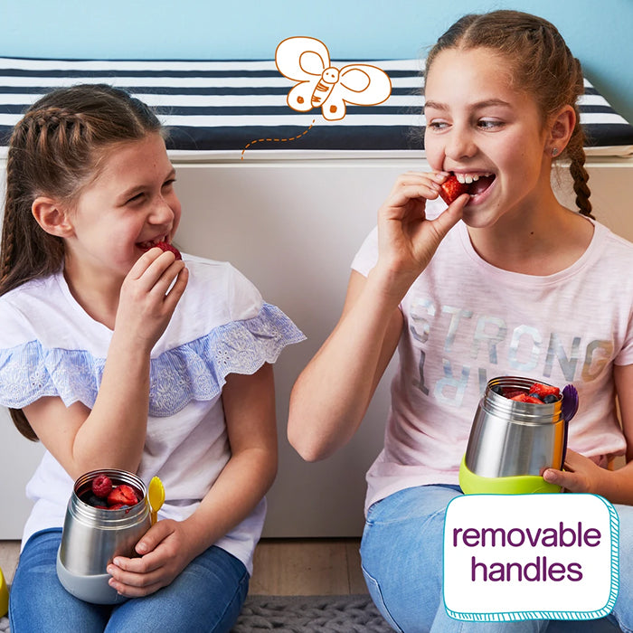 Keeps food at the perfect temperature all day, whether kids prefer warm pasta for lunch or cold refreshing fruit and yogurt. Great for kinder and school with a 335ml capacity. Comes with spork utensil that tucks away into a custom bumper. Easy-grip handles give kids leverage to open the jar easily, encouraging independence. Removable arms and bumper ensure the food jar can be tailored for older kids too. The unique stop feature stops parents from overtightening the lid. When using to keep food warm - for best performance fill the stainless steel base with hot water for a few minutes to warm it before pouring water out - and filling with delicious hot food.