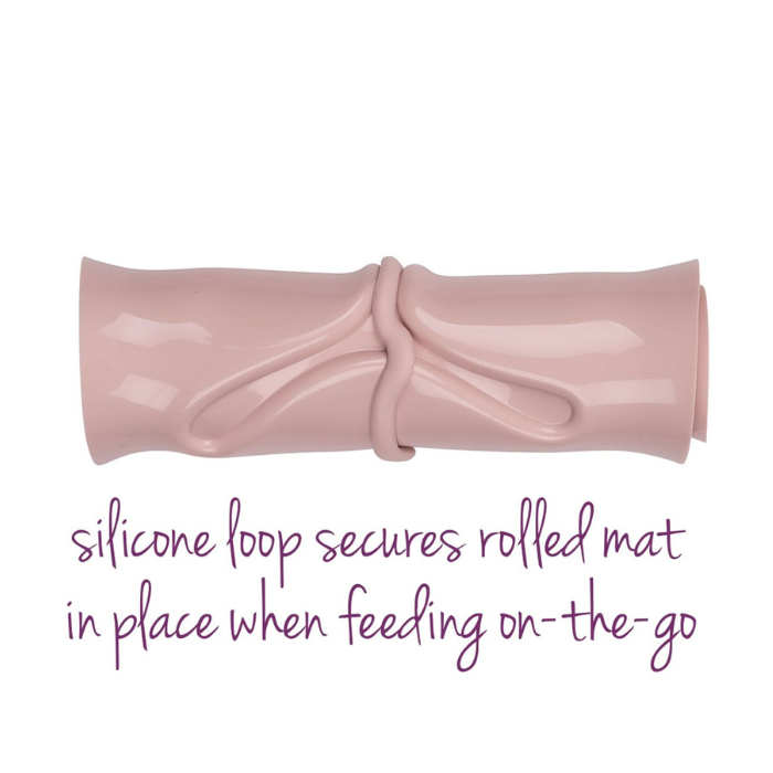 Unique and travel friendly mealtime system lets parents unroll the mat onto tabletops or highchair surfaces and they’re good to go. The non-slip base keeps food in place and when done simply pack up, roll up and go. Built-in curved edge bowl supports weaning and independent feeding. Suitably sized for wet foods such as yoghurt, pureed vegetables and soups, the soft silicone edges are the perfect partner for the included deep scooped spoon – soft enough to help collect food or wipe away any access. And the three-section divider keeps foods separate for learners and fussy eaters alike.