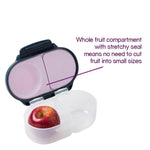 The flexi whole fruit holder secures small, whole fruits in place, meaning no more cut fruit or soggy, bruised snacks! Both sealed compartments are leak proof so wet snack ideas such as puree, yoghurt and dips can be packed with peace of mind.