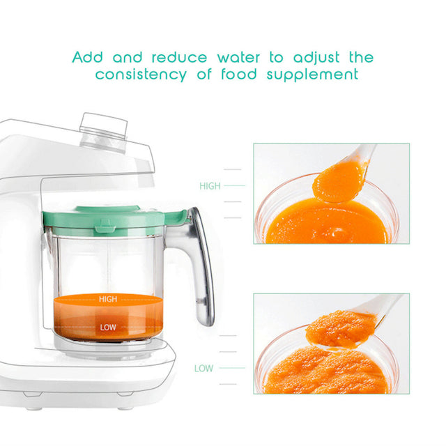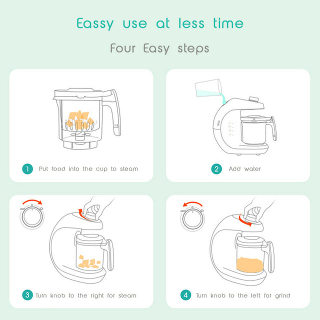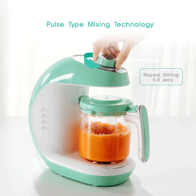 - All-in-1 baby food maker prepares fruits, veggies, fish, and meat in just 15 minutes. Aside from steaming, it blends, defrosts and reheats food. The one-handed operation and easy to clean means you can hold your baby and make a homemade meal all at once. Another perk: the stainless steel water reservoir holds onto the condensed water, which you can pour in while pureeing to get important nutrients back into the food.