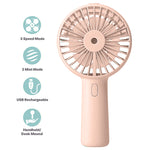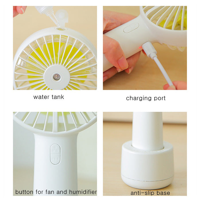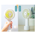 • Handheld and desk fan 2 in 1 design: This small fan is not just a portable fan but also a desktop fan when put into the base. There are silicone pads on the bottom of the fan and the bottom of the base. With or without the base, the cooling fan is very stable on the table.