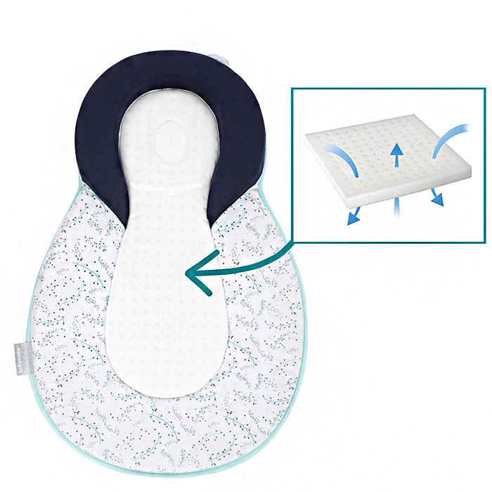 Your little one can stay in the Cosydream for hours. When it comes to baby’s comfort, our experts (pediatricians, osteopaths and baby care experts) and our co-creator parents have left nothing to chance. The Cosydream is made from naturally ultra-soft, antibacterial and breathable bamboo viscose. The micro-perforated foam together with the thermo-regulating Coolmax fabric guarantee perfect ventilation around the head, back and nape of the neck. Everything has been designed for your baby’s well-being.