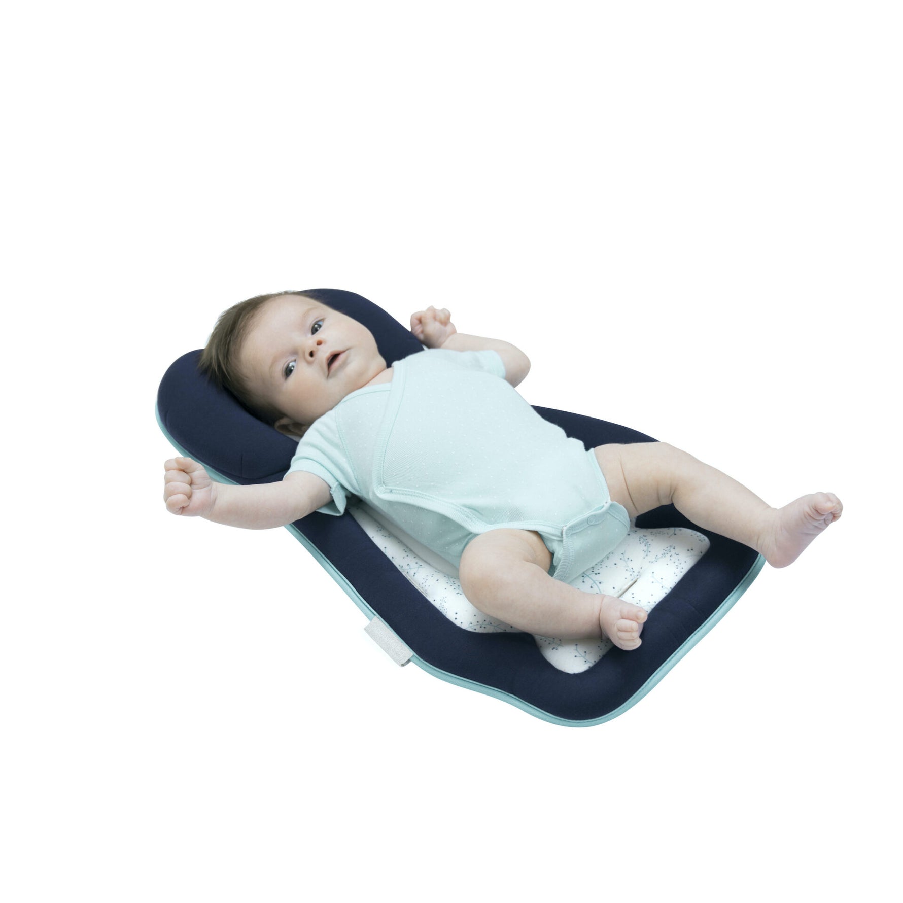 The Cosymorpho reassures and maintains your baby in all environments. After nine warm months in mummy's tummy, your baby may feel a bit lost in its new surroundings. The Cosymorpho blue creates a reassuring cocoon for your baby. Your little one is comfortably settled right from birth. Our Cosymorpho is a universal product. With its dimensions of 54.5 x 35 x 5 cm, it has been designed to fit any type of bouncer, swing, car seat or carrycot (2, 3 or 5 point harness) with detachable straps. However, we cannot guarantee compatibility with a particular model of baby carriage and invite you to contact the manufacturer of the model concerned for further details. It should be checked beforehand that the harness of the product in question can be opened fully so that the straps can pass through the openings in our Cosymorpho. This cosymorpho reducer has fleece edges in bamboo viscose. This ultra soft fabric has unique properties. It is breathable. Your baby is kept in a supine position (according to the WHO recommendation) while retaining freedom of movement. The Cosymorpho has been designed for the well-being of your baby. Memory foam reduces pressure on the back. Its particularity : it is breathable and perforated for the comfort and safety of your baby. The Coolmax fabric guarantees ideal ventilation of the head, back and neck. Your baby will spend many hours on his back. To keep a round head, the Cosymorpho incorporates a morphological headrest. Comfortable, breathable and morphological, the Cosymorpho Fresh Blue ensures your baby optimal comfort wherever he is.