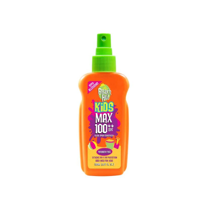 Beach Hut Sunblock Kids MAX SPF 100 ++ Clear Spray Body Sunscreen 150ml is specially made for the kids and the whole family! The High SPF to protect the kids from skin cancer, sunburn and skin darkening but specially formulated to be ultra mild for kid's sensitive skin. It has a fresh citrus scent that kids would love!