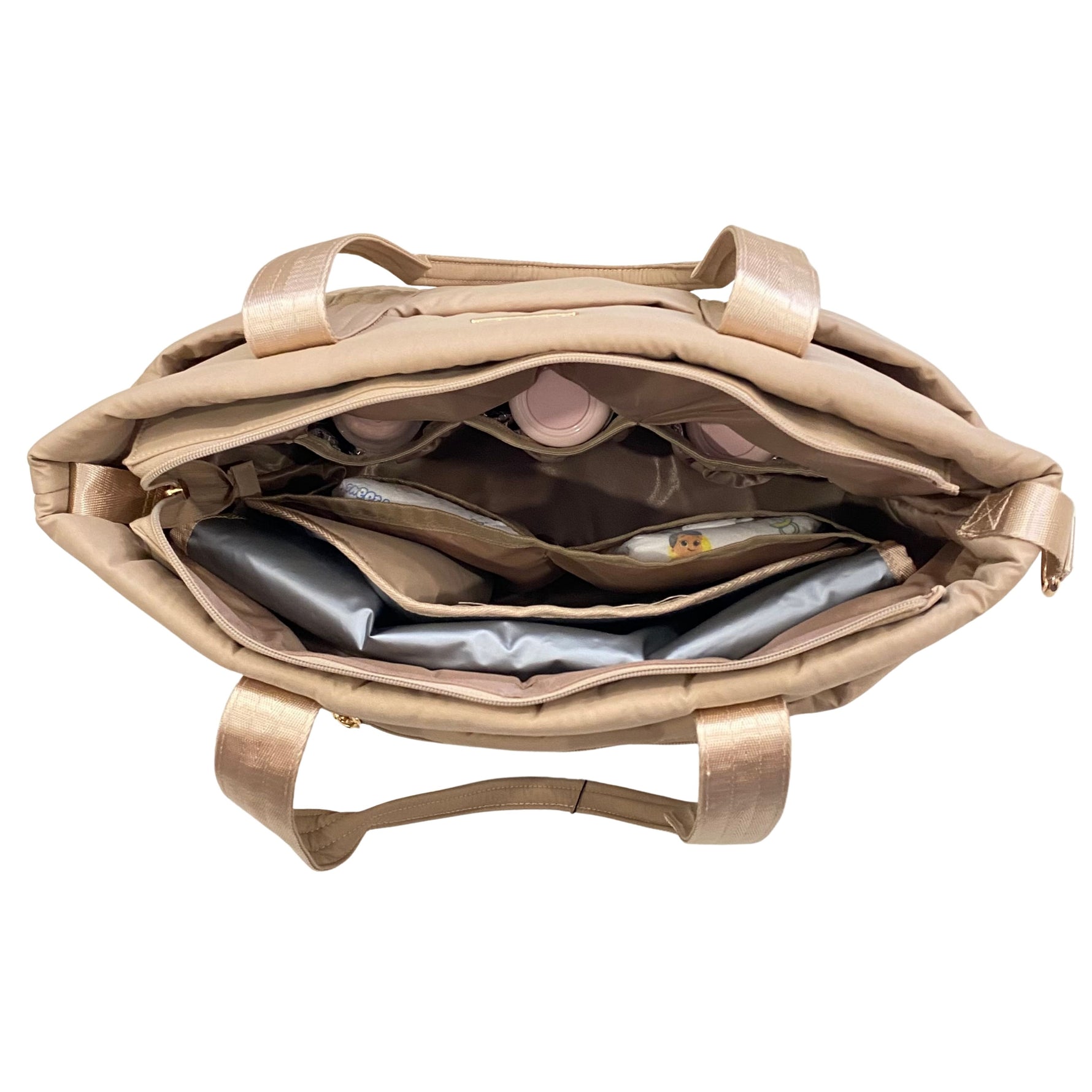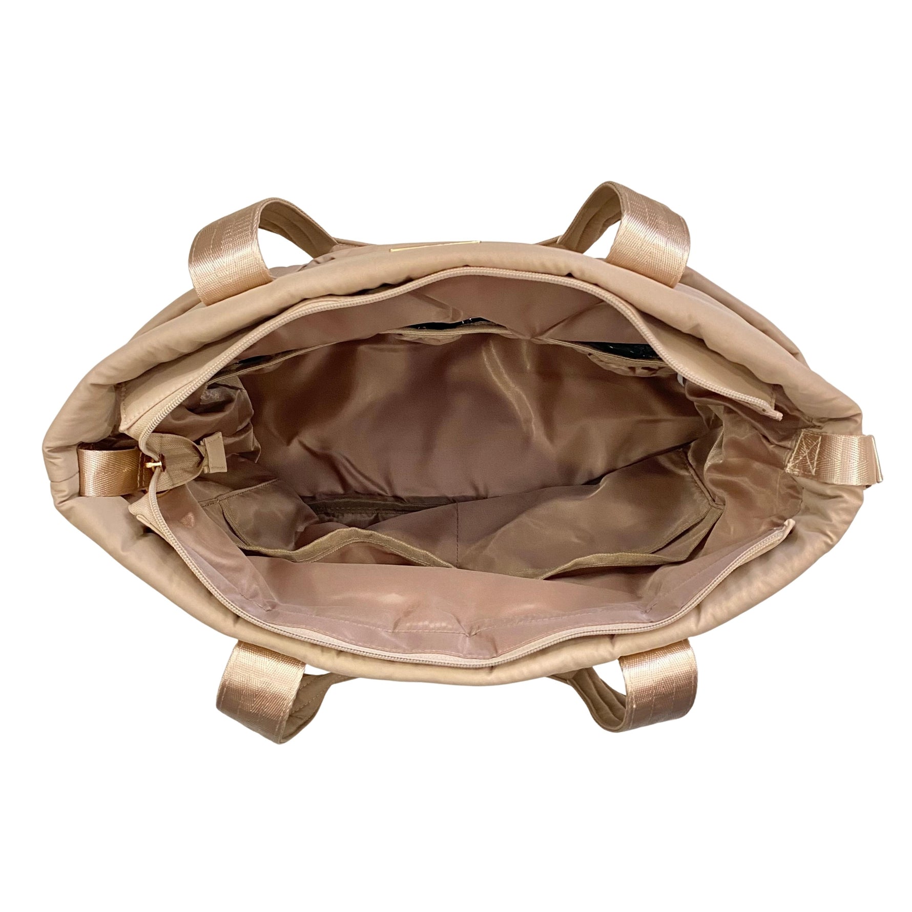 Made of soft, smooth, puff polyester with gold hardware