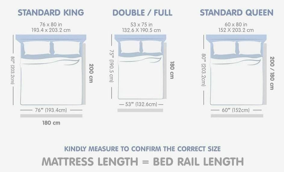 - Bedrail belt included (to fasten the bedrail to the bed with a flat bed or a stacked springbed model. Belt can be adjusted up to 200cm)