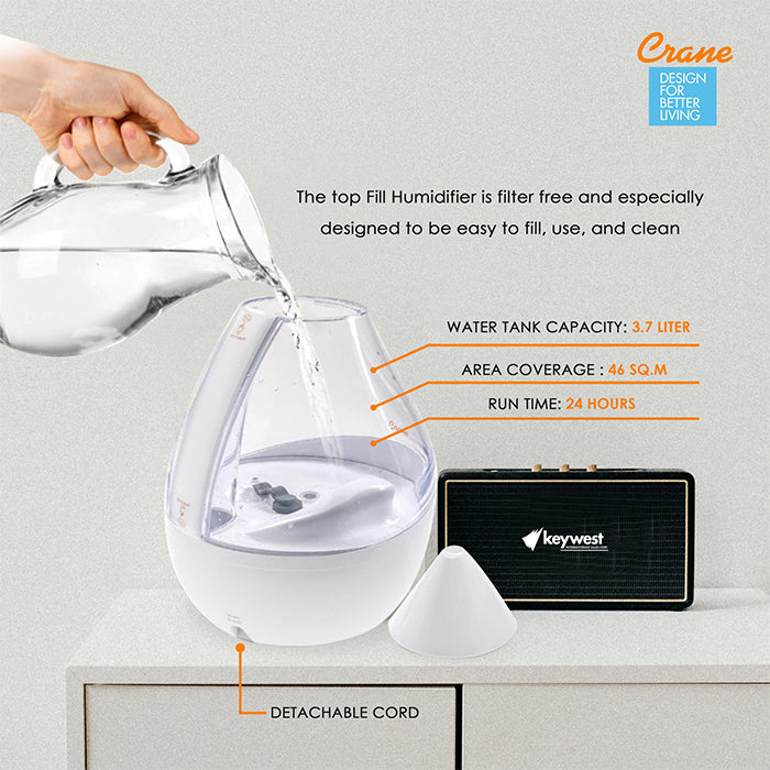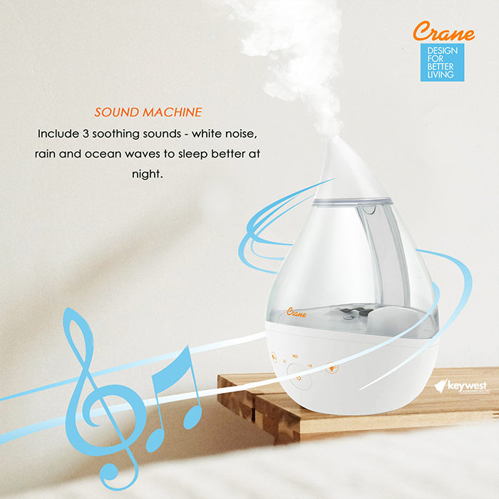 - WHISPER QUIET: Crane’s drop humidifier runs whisper quiet which makes it the perfect option for light sleepers, kids, and especially babies.