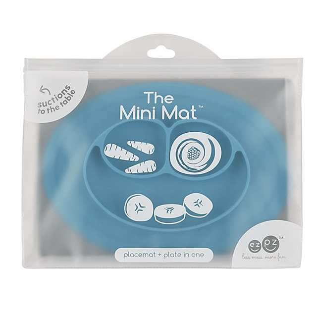 - Like all of ezpz's products, the Mini Mat is an all-in-one placemat + plate that suctions to the table. The mat is made from 100% food-grade silicone that is BPA, BPS, PVC, latex, and phthalate free. Designed for infants / toddlers 4+ months.