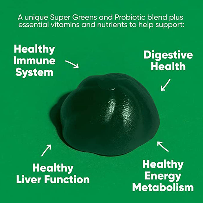 Made with unique super greens & probiotic blend as well as added essential vitamins & minerals to help support: