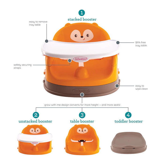 Infantino Grow-With-Me 4-in-1 Two-Can-Dine Feeding Booster Seat - Fox