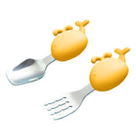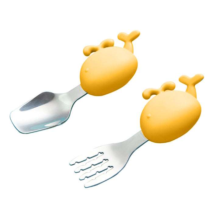 Keaide Biddy Whale Baby Training Spoon and Fork - Yellow