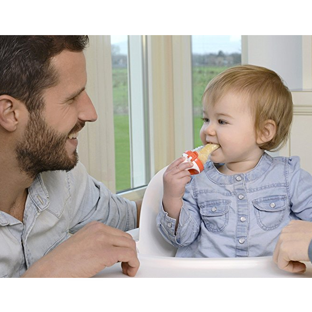 - The award-winning Food Feeder Plus features a larger, flexible silicone sac to satisfy a baby’s growing appetite. With the Food Feeder Plus enhanced the ergonomic design, and larger feeding sac, your child can safely and independently explore new tastes and textures. All of this will help give your child a head start toward a lifetime of healthy eating.