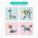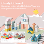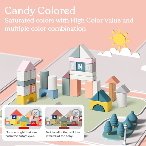 - Candy colored building blocks that are saturated with high color that can be matched with multiple color combinations.