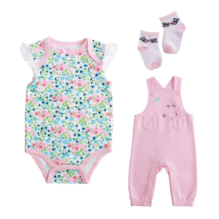 Little Steps 3-Piece Bodysuit, Jumper and Socks in Pink Floral