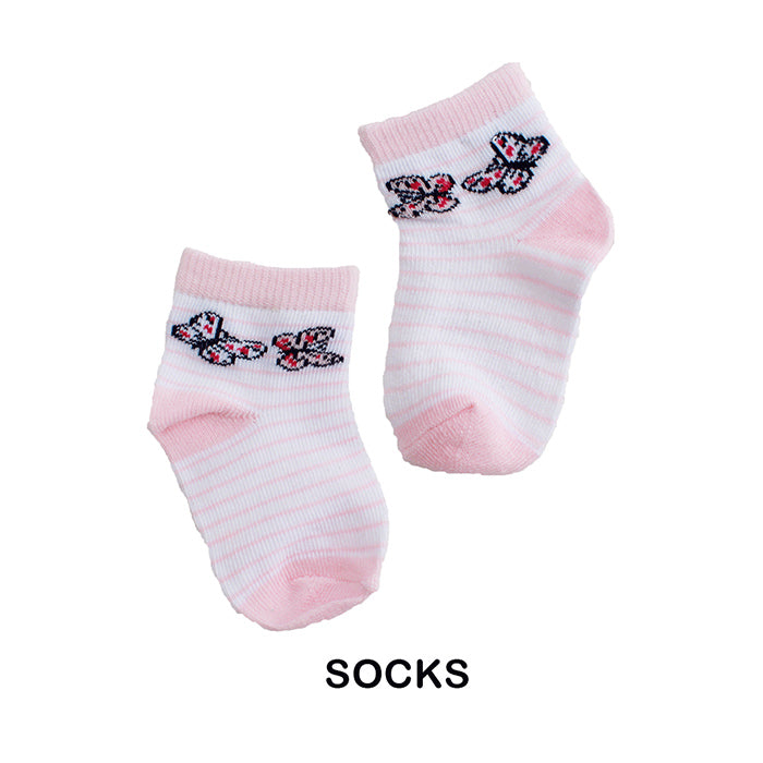 Little Steps 3-Piece Bodysuit, Jumper and Socks in Pink Floral - 6-9 Months