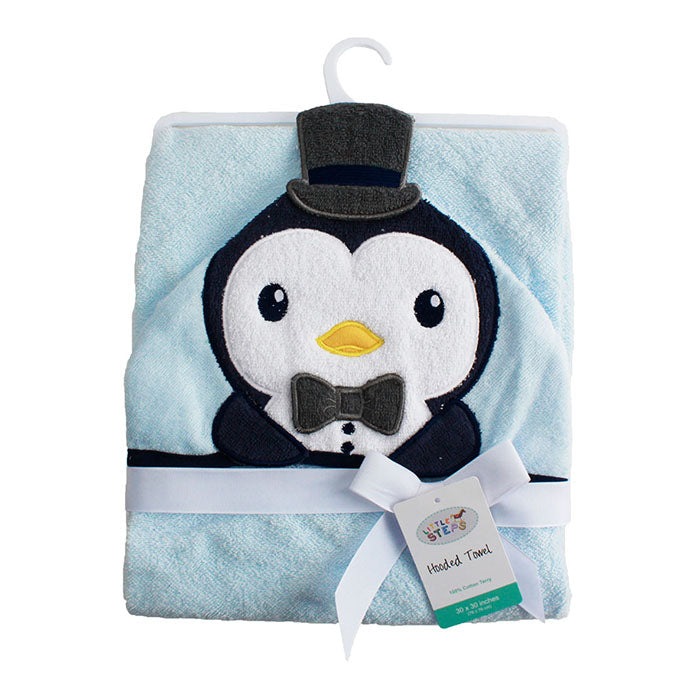 Little Steps Hooded Towel (30" x 30") - Blue Penguin