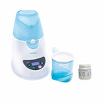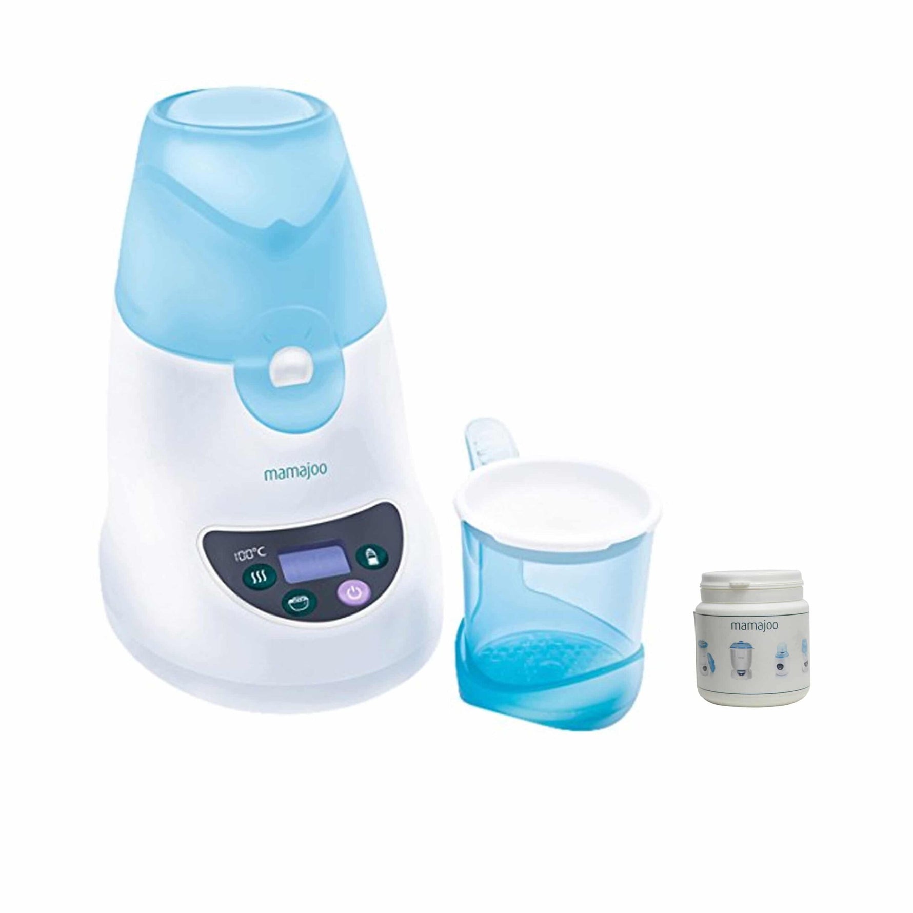 - You can warm your expressed milk or baby food with multi-function Mamajoo 3-in-1 digital LCD warmer and steam sterilizer while you can also sterilise your babies’ feeding bottle fast and easily. This warmer helps you to prepare your child’s favourite milk or food at suitable temperatures and has LCD display to follow the process. It is automatic with the intelligent microprocessor control technology and process with signs are easily visible on LCD display on the product. Temperature of the water inside the warmer quickly reaches to 35 degrees Celsius during milk or water warming process while it quickly reaches to 65 degrees Celsius during baby food warming process. However, baby food should not be heated very quickly in order to heat them homogeneously and not to result them loosing nutritional values. Therefore it reaches gradually in a longer period of time to the target temperature of 40 degrees Celsius for water and milk warming process and to the target temperature of 70 degrees Celsius for baby food warming process. When the warming process is finalised, an alarm will be heard and the temperature will be constant automatically. At steam sterilizer mode, it starts sterilizing when the temperature reaches at 100 degrees Celsius and the LCD display shows the temperature of the water inside. When the process is finalised, an alarm will be heard and it will turn off automatically.